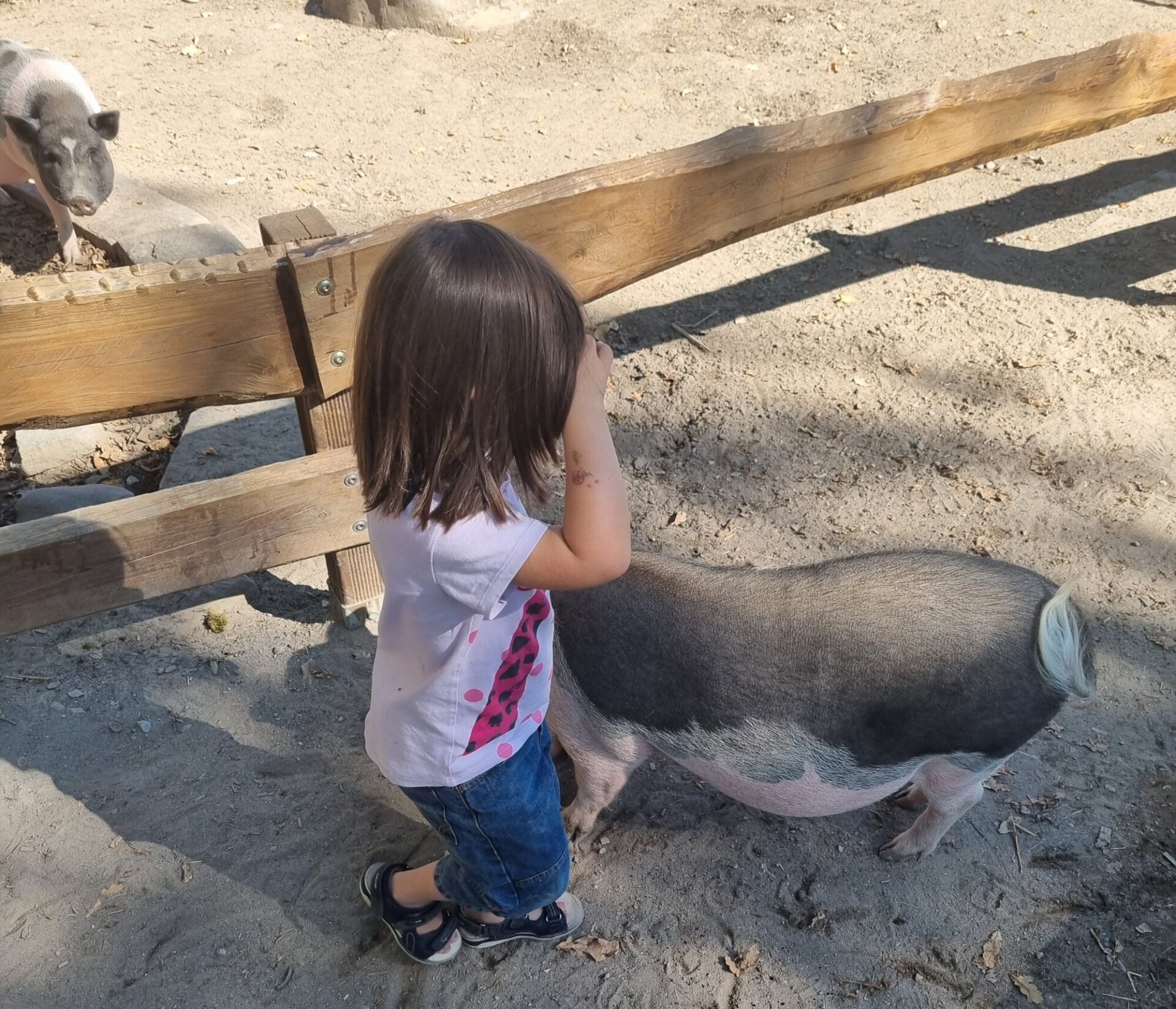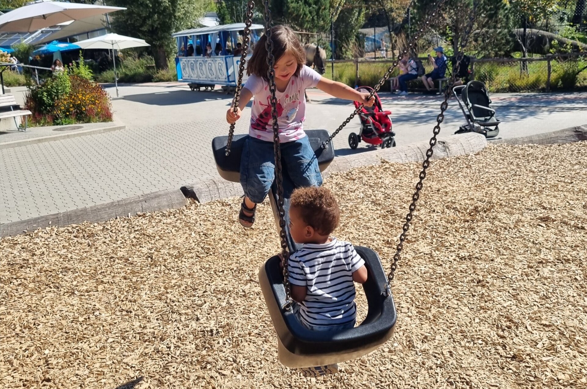 Am Samstag fuhren wir mit dem Zug in den Kinderzoo Rapperswil. Dort sahen wir viele Tiere – Giraffen, Zebras, Elefanten, Kamele und Schweine. Zum Zmittag gab es Sandwiches, Gemüse, Riegel und Darvida auf dem Spielplatz. Danach konnten wir dort spielen und ein Glace oder eine Zuckerwatte geniessen.