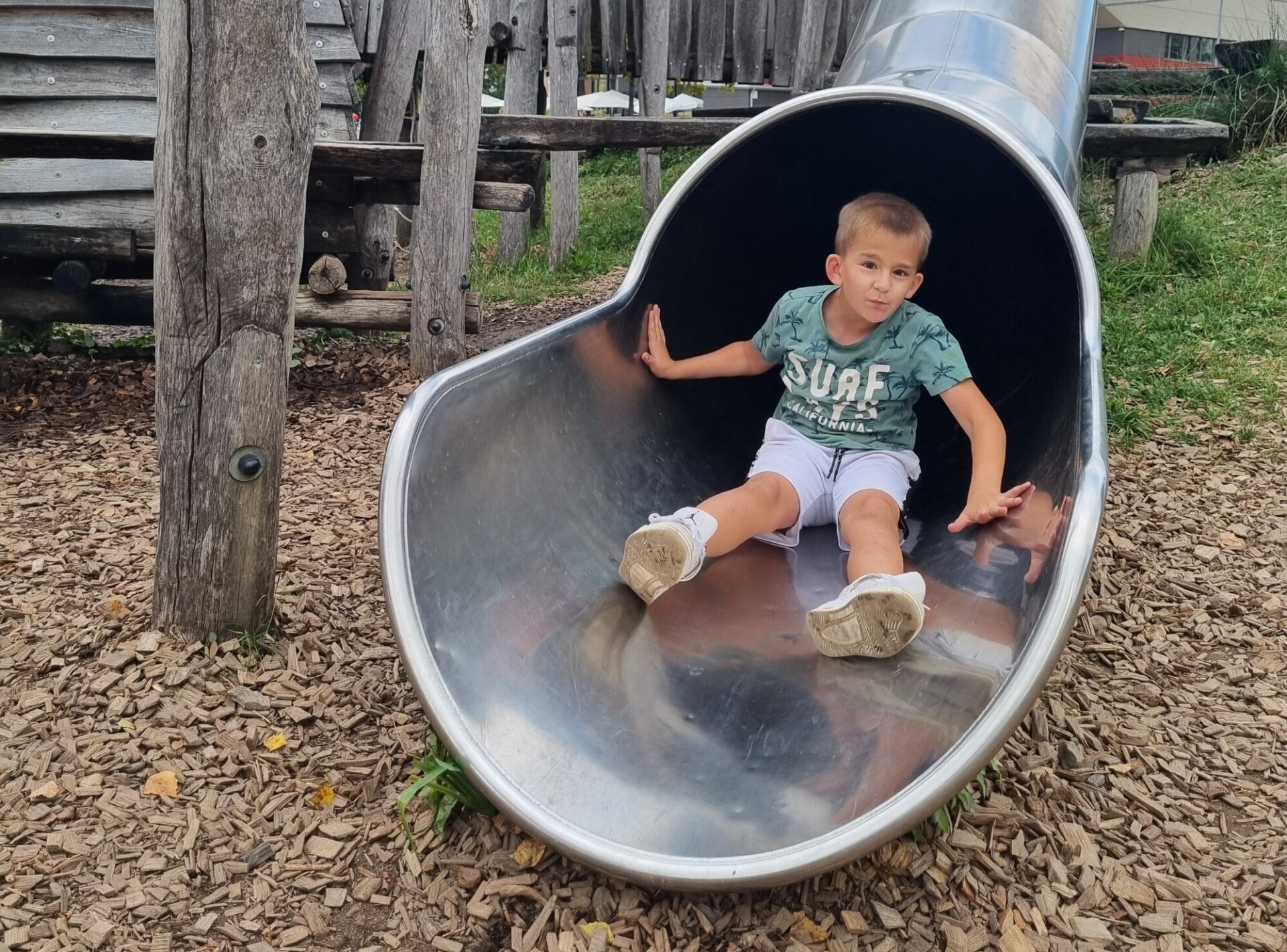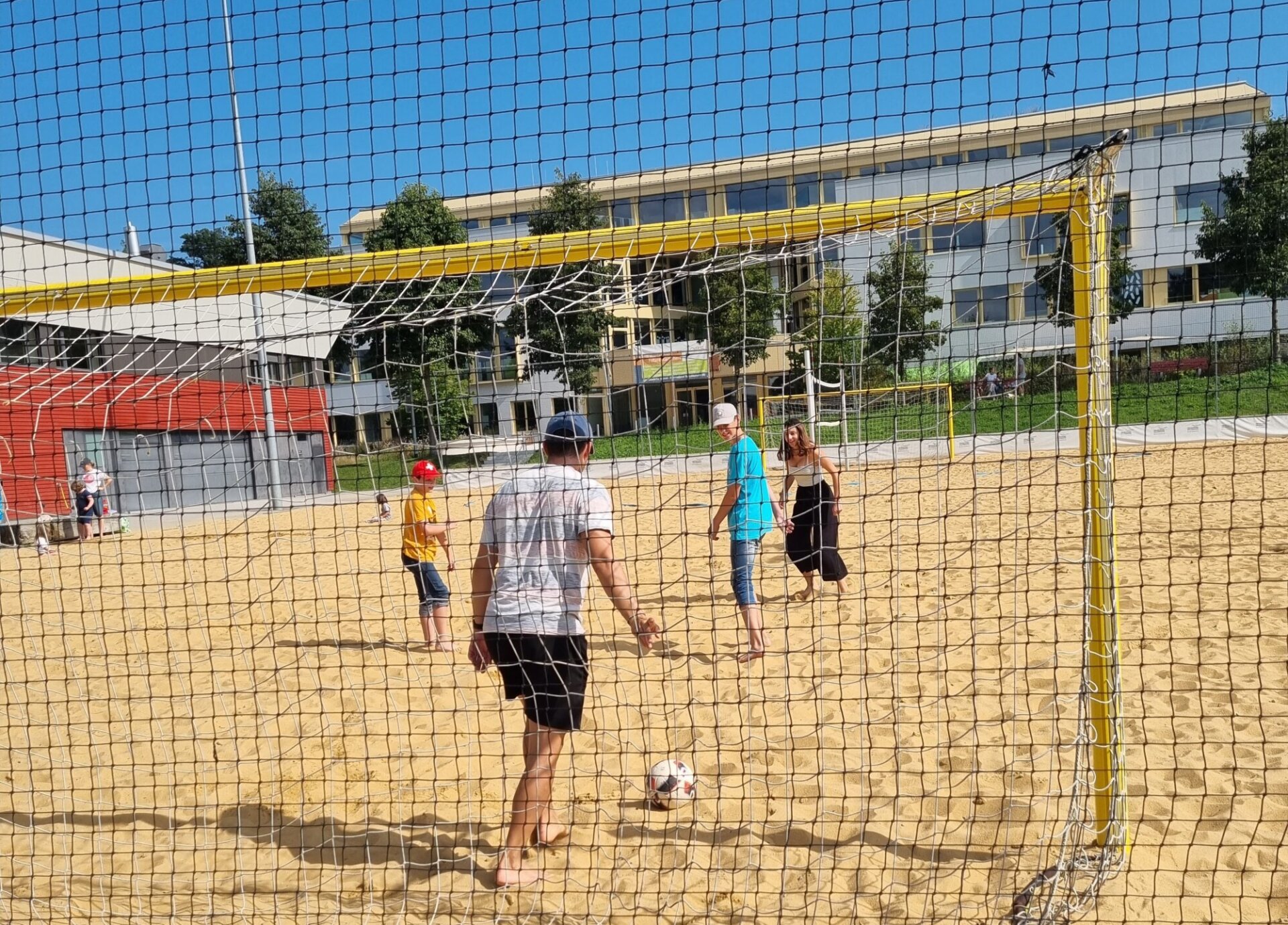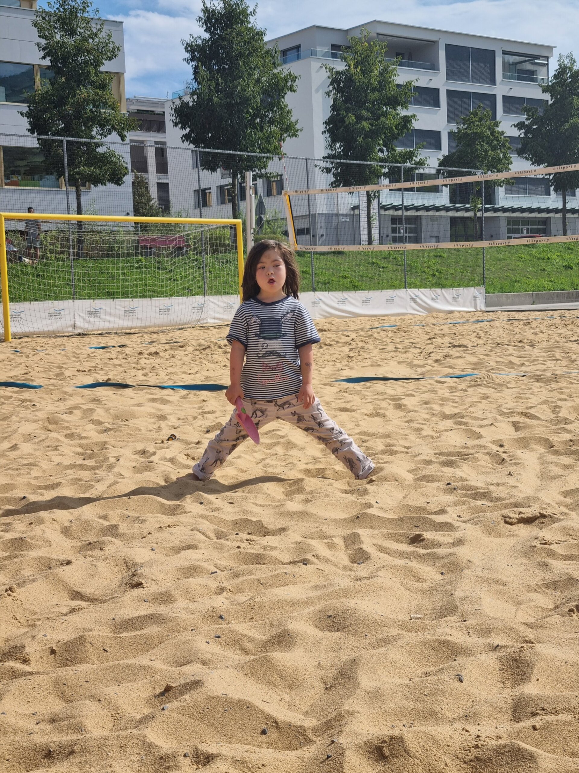 Im Park rutschten wir, spielten Fussball im Sand oder ruhten uns aus. Zum Zmittag gab es Hörnlisalat, Gemüse, Früchte und Darvida. Zurück an der HZA gab es leckeren Marmorkuchen und Apfelschnitze.