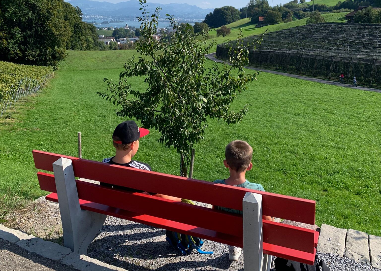 Ein paar Kinder sind zu Fuss zurück nach Pfäffikon gelaufen, die anderen fuhren mit dem Zug. Weil es so heiss war, gingen wir noch zum Spielplatz am See. Einige Kinder sprangen zur Abkühlung in den See – das war super!
