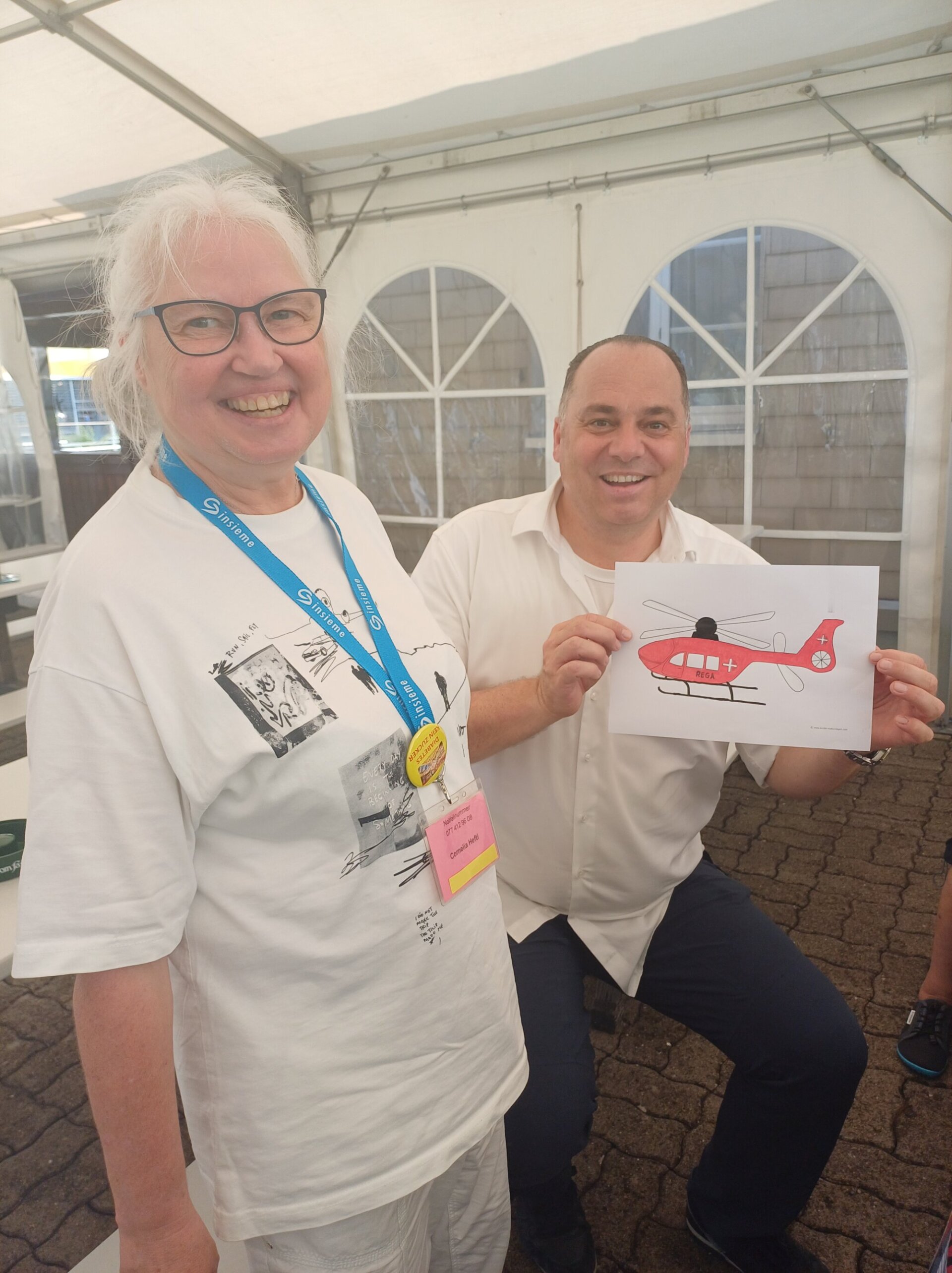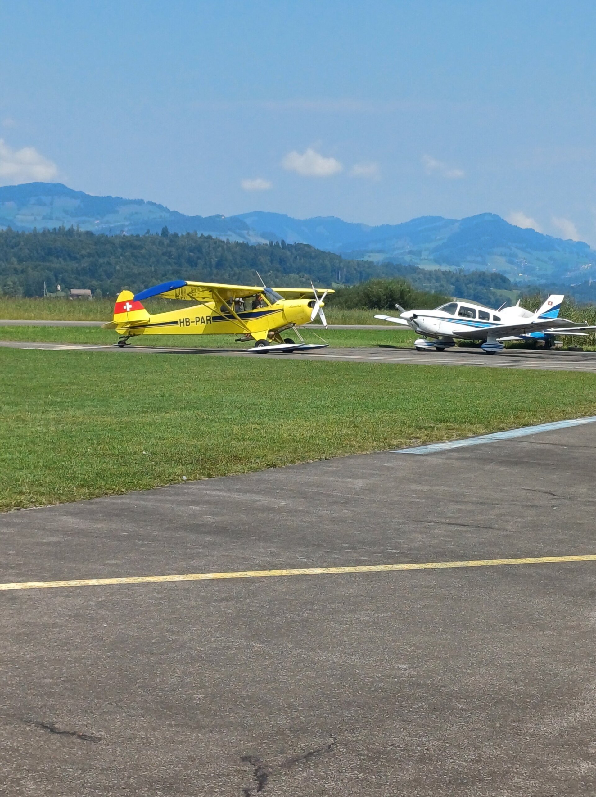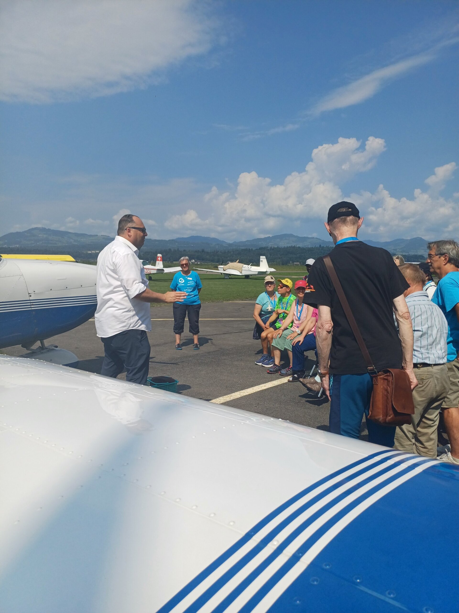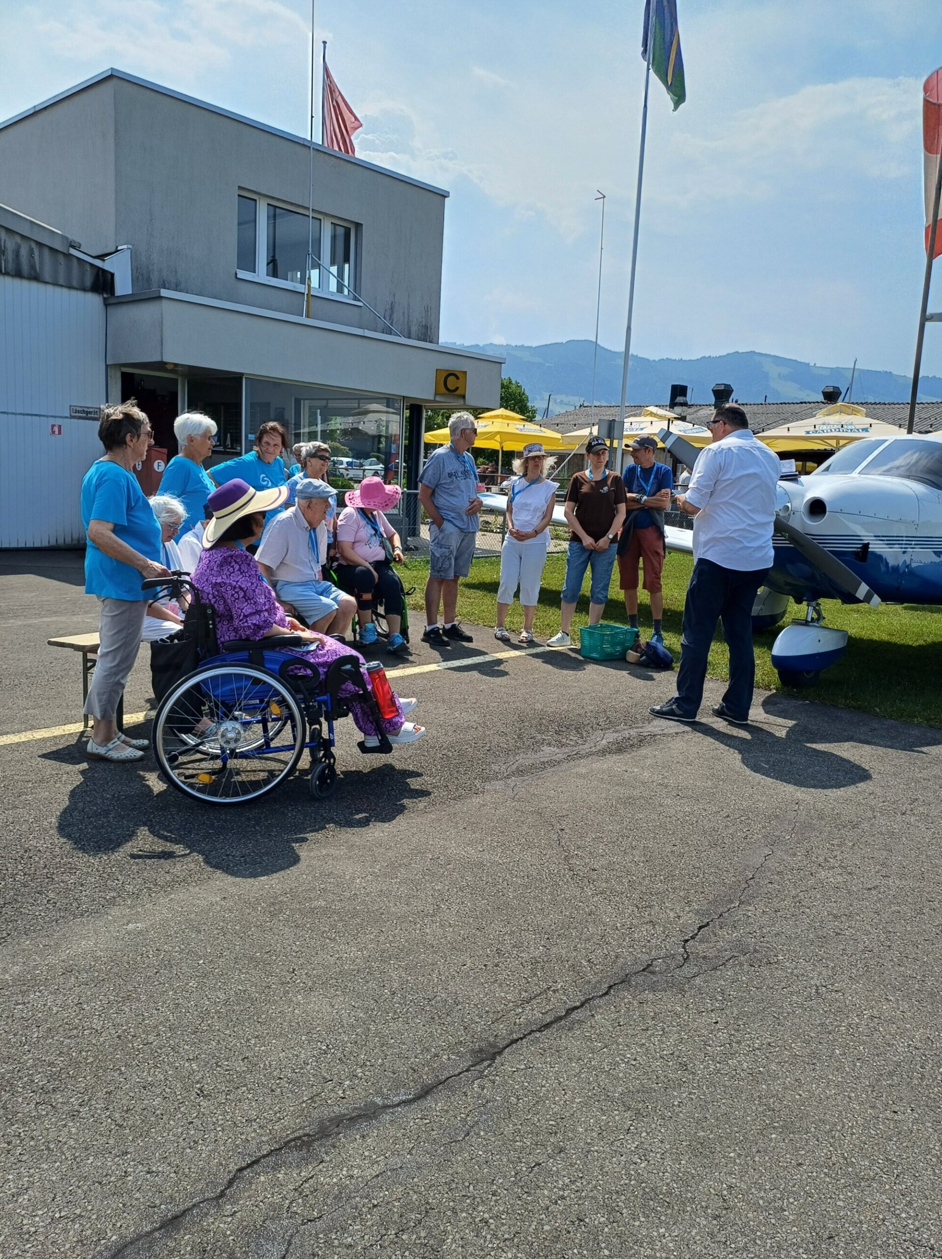 Der Autobus holte die beeinträchtigten Menschen in den Bezirken Einsiedeln, Höfe und March ab mit dem Ziel Flugplatz Wangen. Dort durften die Gäste die verschiedenen Flugzeuge beim Starten und Landen aus der Nähe beobachten, was überaus faszinierend war. In Gruppen aufgeteilt gingen die einen zum Flugplatz, wo Herr Matthias Schuler wartete. Er erklärte, was alles bei einem Flugzeugcheck kontrolliert wird oder die Fliegersprache mit den verschiedenen Buchstaben. Als Erinnerung erhielt jeder Gast ein Foto zusammen mit der Flugzeug-Piper, was alle begeisterte. Die anderen Teilnehmenden sassen im Schatten vom Restaurant Flugi bei Gesellschaftsspielen wie UNO oder Schwarzpeter und beim Bemalen eines kleinen Holzflugzeuges. Dieses durfte jeder am Schluss nach Hause nehmen und wird sicher noch lange an den tollen Nachmittag erinnern. Bei den hochsommerlichen Temperaturen genossen alle anschliessend eine Abkühlung mit Getränken und einem feinen Glacedessert aus dem Flugi-Restaurant. Die Genossame Lachen hat für diesen Nachmittag einen grossen finanziellen Beitrag geleistet, wofür insieme Ausserschwyz herzlich dankt. Ebenso hat Herr Schuler kostenlos seine Dienste für diesen Nachmittag zur Verfügung gestellt, danke.