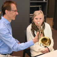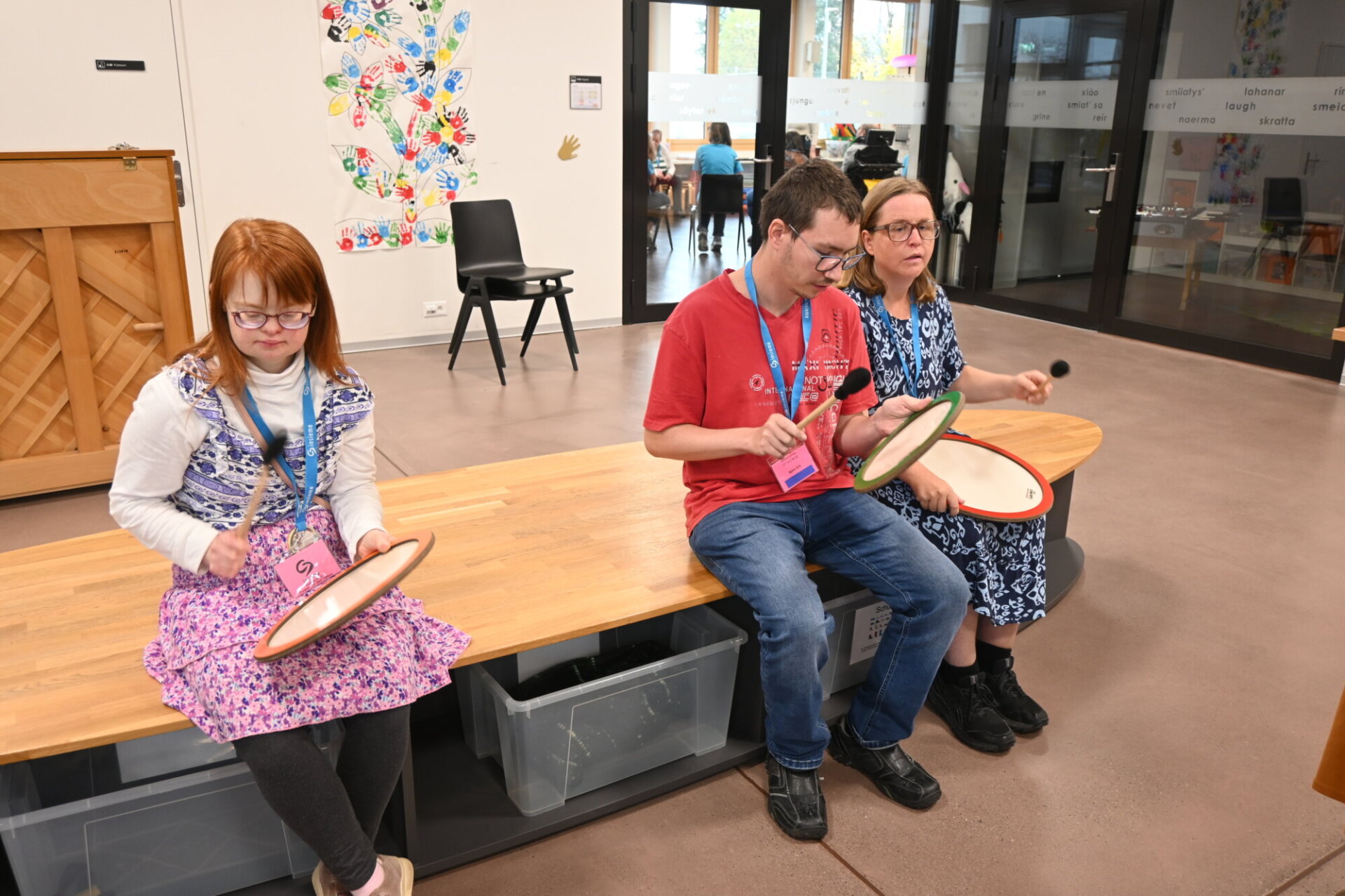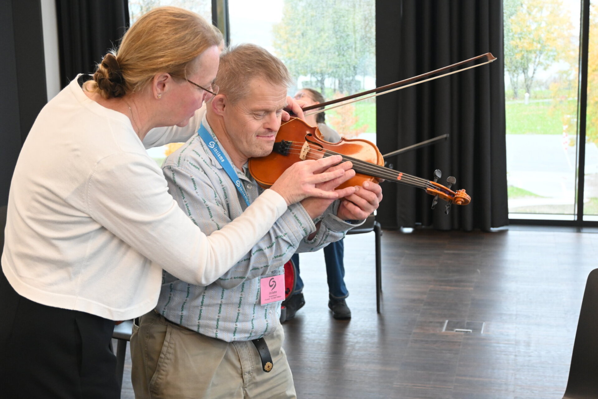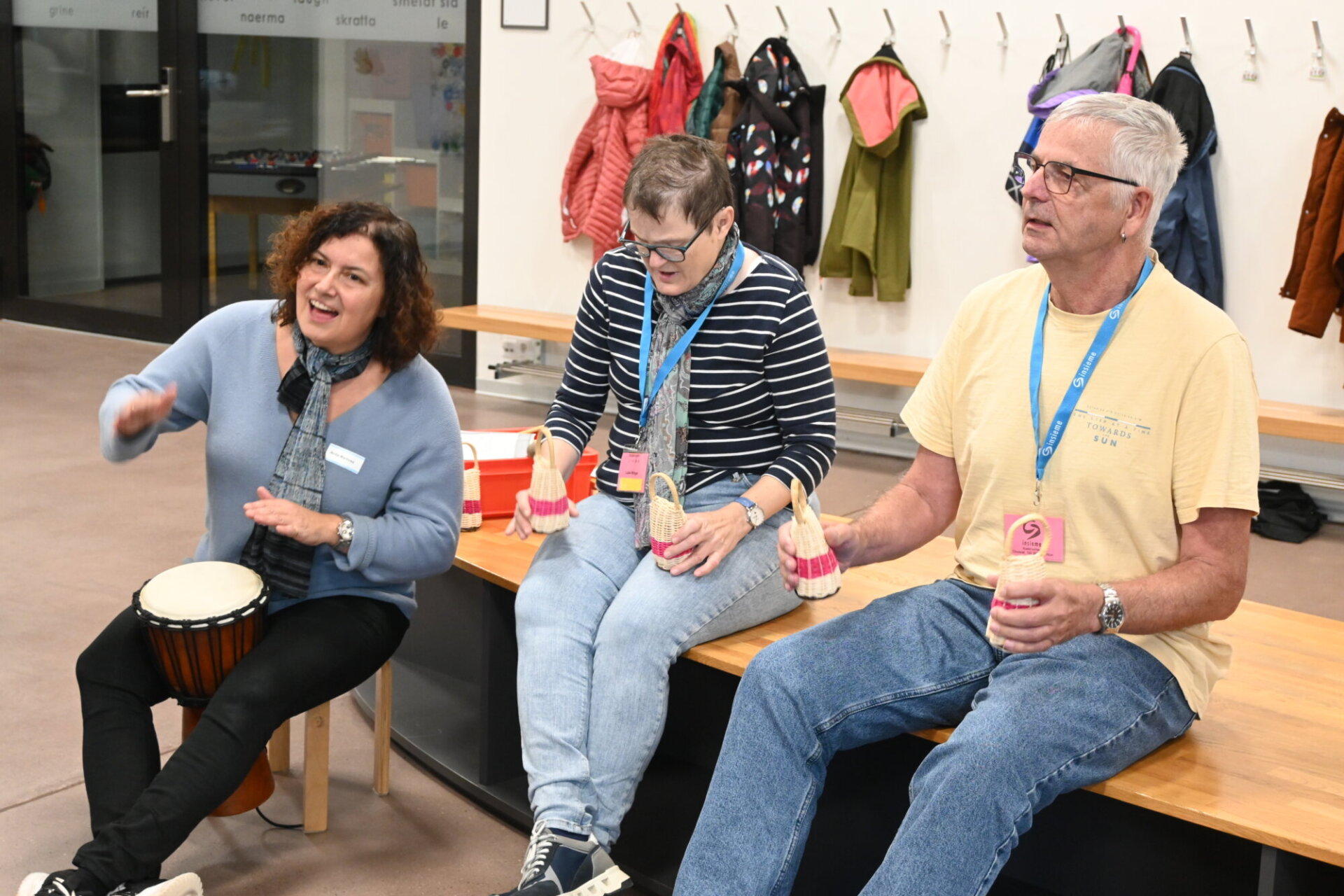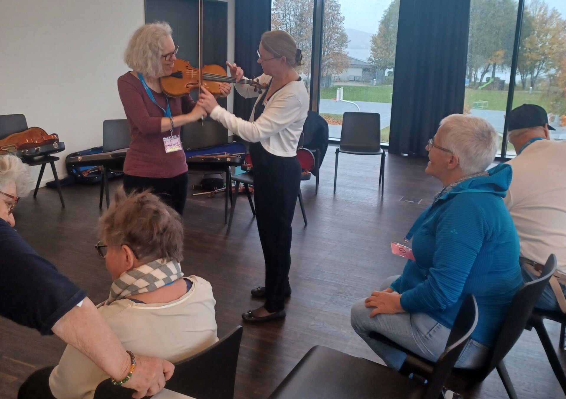 Katalin Müller, Schulleiterin der Musik- und Kunstschule, begrüsste die bunte Schar und freute sich auf einen unvergesslichen Nachmittag. Eingeteilt in vier Gruppen durchliefen die 31 Teilnehmenden verschiedene Posten. Während sie in einem Raum Geige spielen konnten, durften sie in einem anderen in die Trompete pusten. Eine Lehrperson war ebenfalls vor Ort, um den Gästen das Klarinettenspielen näherzubringen. Im Erdgeschoss warteten diverse Perkussionsinstrumente auf die Gruppe und es wurde ein afrikanisches Lied gesungen und getanzt. Wer schon immer einmal in einem Theater mitspielen wollte, der kam an diesem Nachmittag ebenfalls auf seine Kosten. Egal, welchen Raum man betrat, die fröhliche Stimmung war überall deutlich spürbar.