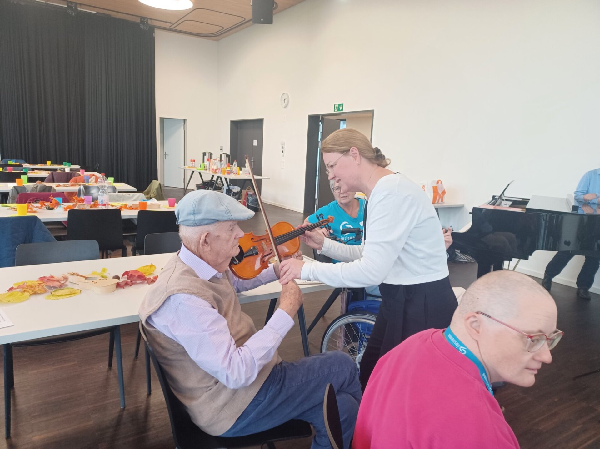 Die Gäste waren mit grosser Freude mit dabei und bewiesen ihr musikalisches Talent. Natürlich wurde die Schar auch noch kulinarisch verwöhnt – eine leckere Kürbissuppe wurde serviert. Zum Abschluss haben alle gemeinsam das Lied „Als was bruuchsch uf de Wält, das isch Liebi“ gesungen. Ganz bestimmt werden alle diesen tollen Nachmittag in bleibender Erinnerung behalten.