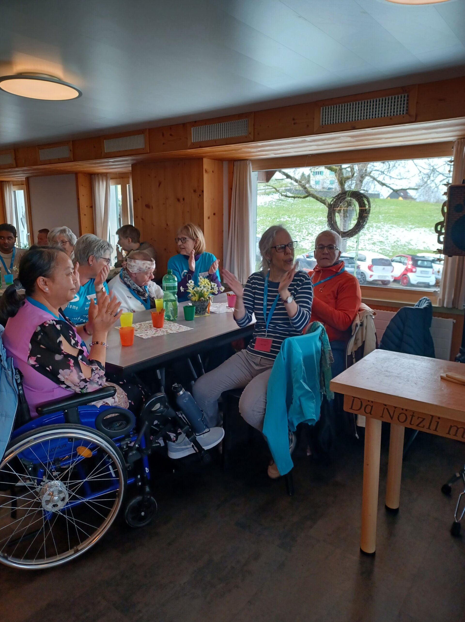 Der Autobus holte die beeinträchtigten Menschen in den Bezirken Einsiedeln, Höfe und March ab mit dem Ziel beim Restaurant Gusöteli Siebnen. Dort wurden alle vom «Nötzli mit de Chlötzli» und seiner Frau Karin erwartet. Bereits nach wenigen Minuten sorgte Julius Nötzli mit seinen Chlefeli und der Musik für eine hervorragende Stimmung. Nach mehreren Darbietungen durften sich die Gäste selbst im «Chlefälä» versuchen und so manches versteckte Talent kam dabei zum Vorschein. Zur Stärkung servierte das Gusöteliteam eine Auswahl an hausgemachten Kuchen und Cakes, die grossen Anklang fanden. Anschliessend ging es mit Schwung im musikalischen Programm weiter, bevor schon bald Zeit für die Rückfahrt war. Mit dem Car wurden alle Gäste pünktlich an ihre Einstiegsorte zurückgebracht. Der fröhliche Nachmittag wird allen Beteiligten noch lange in bester Erinnerung bleiben.
