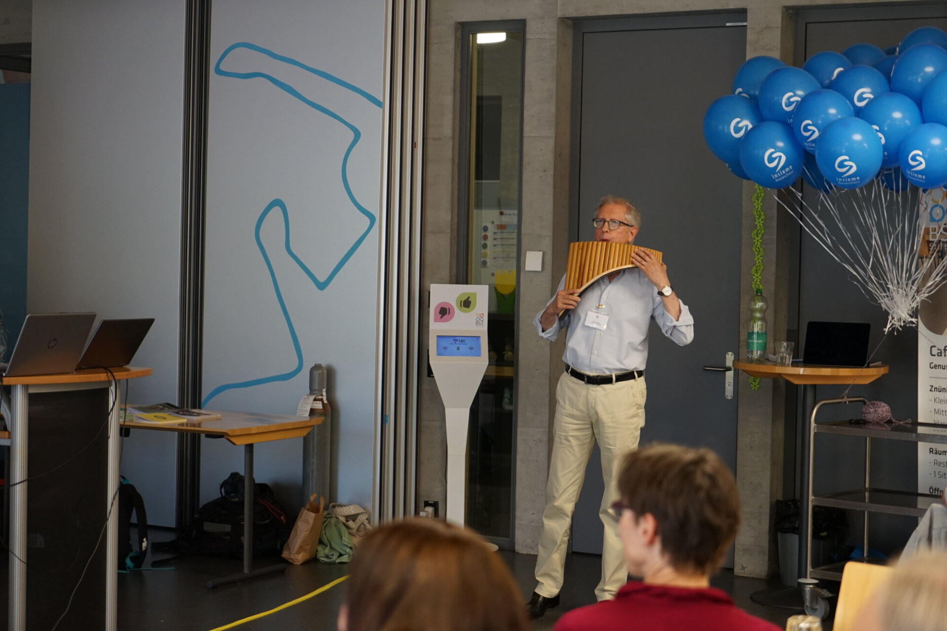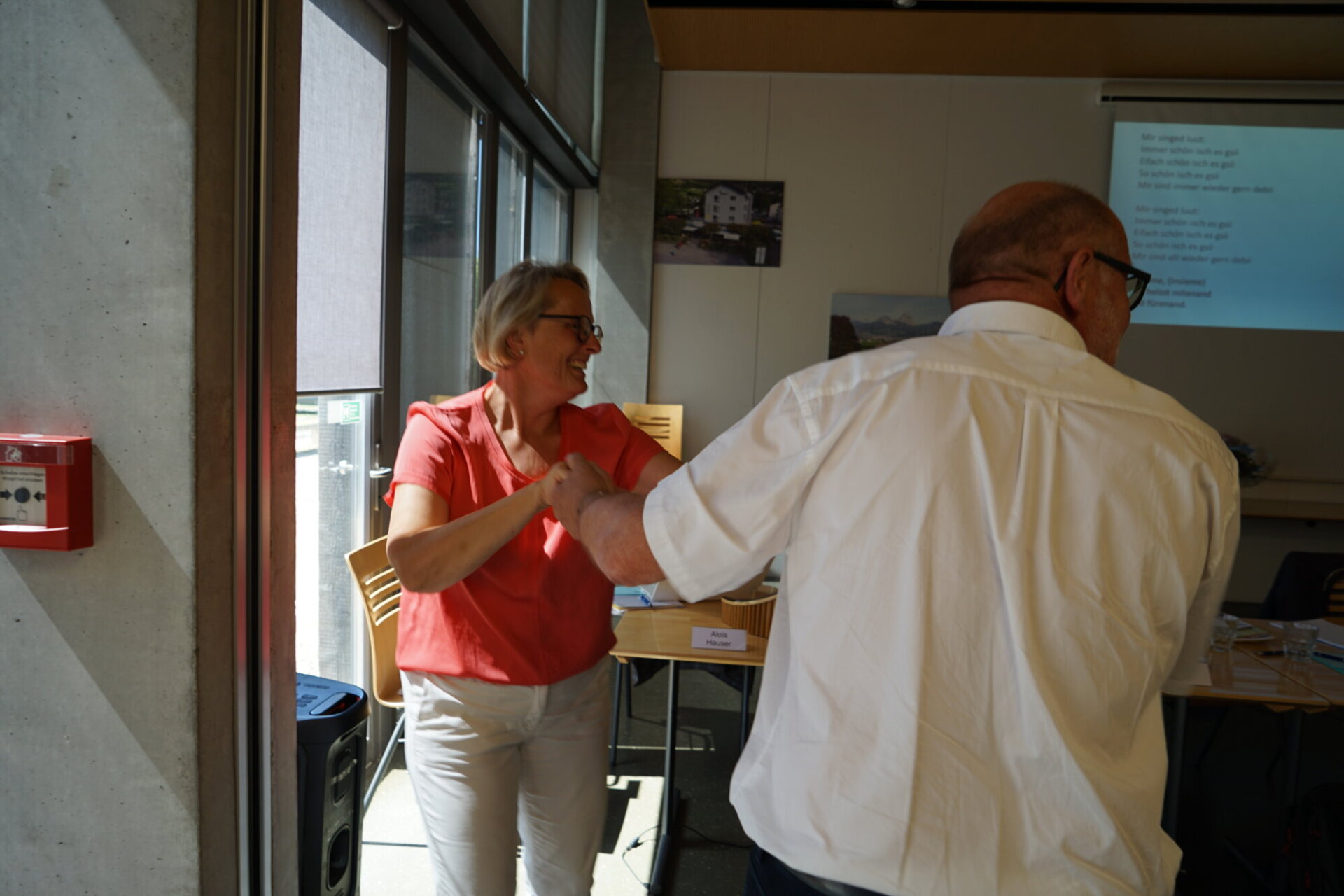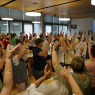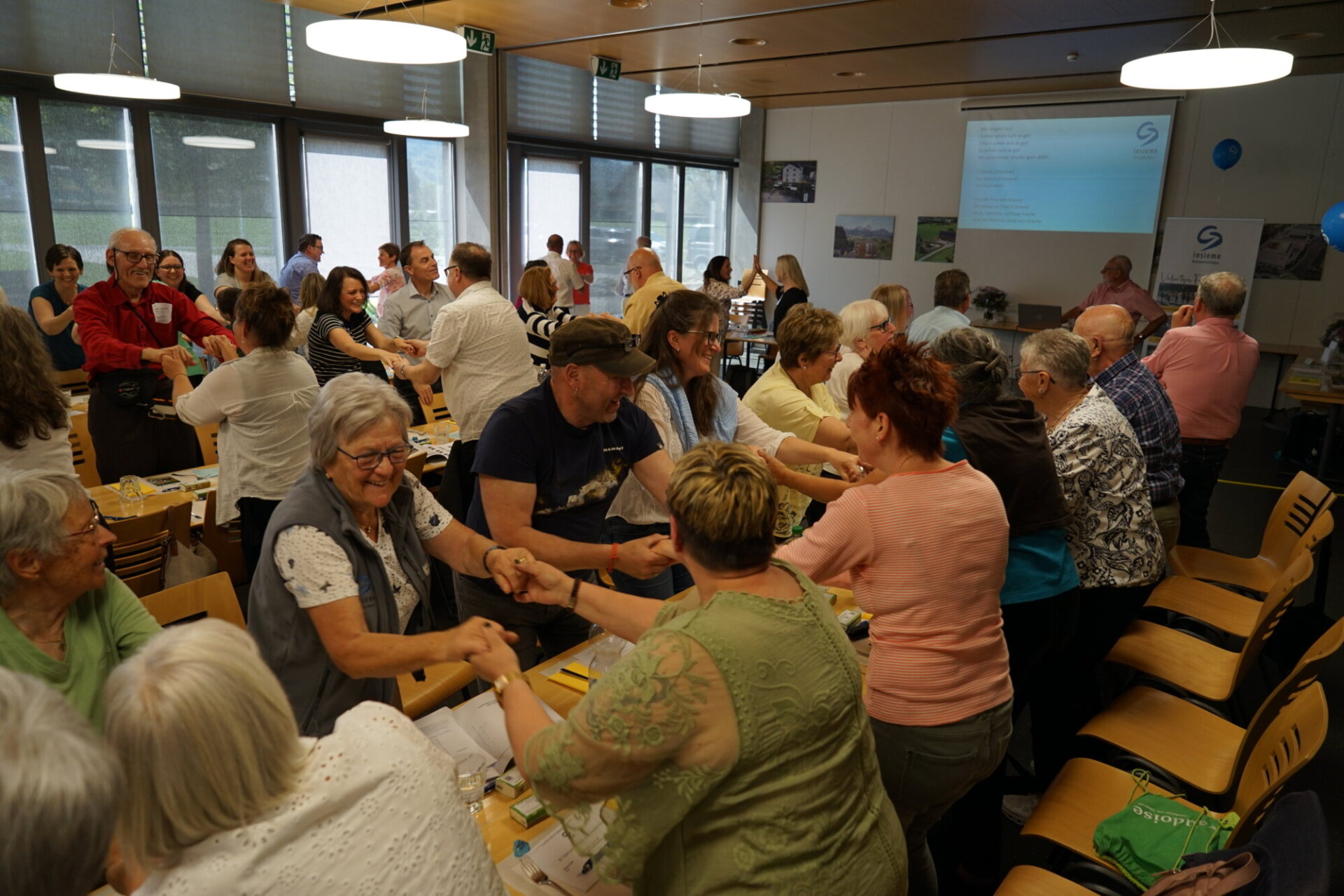 Ein eigener Song Nach den Jahresberichten zauberte Beat Abegg die Überraschung hervor: insieme Ausserschwyz hat jetzt einen eigenen Song. Susi Harms, neu zuständig für den Bereich Ferienwochen und Weekends hat den Song getextet, einen Profi für die musikalische und kostenlose Umsetzung beauftragt, eine einfache Choreografie dazu erarbeitet und ihn mit Begeisterung am Samstag vorgeführt. Ihre Begeisterung steckte an, sodass der ganze Saal mitsang und mittanzte. Dieses wunderbare Lied wird bestimmt manche insieme Veranstaltungen begleiten und darf am Jubiläum nicht fehlen.